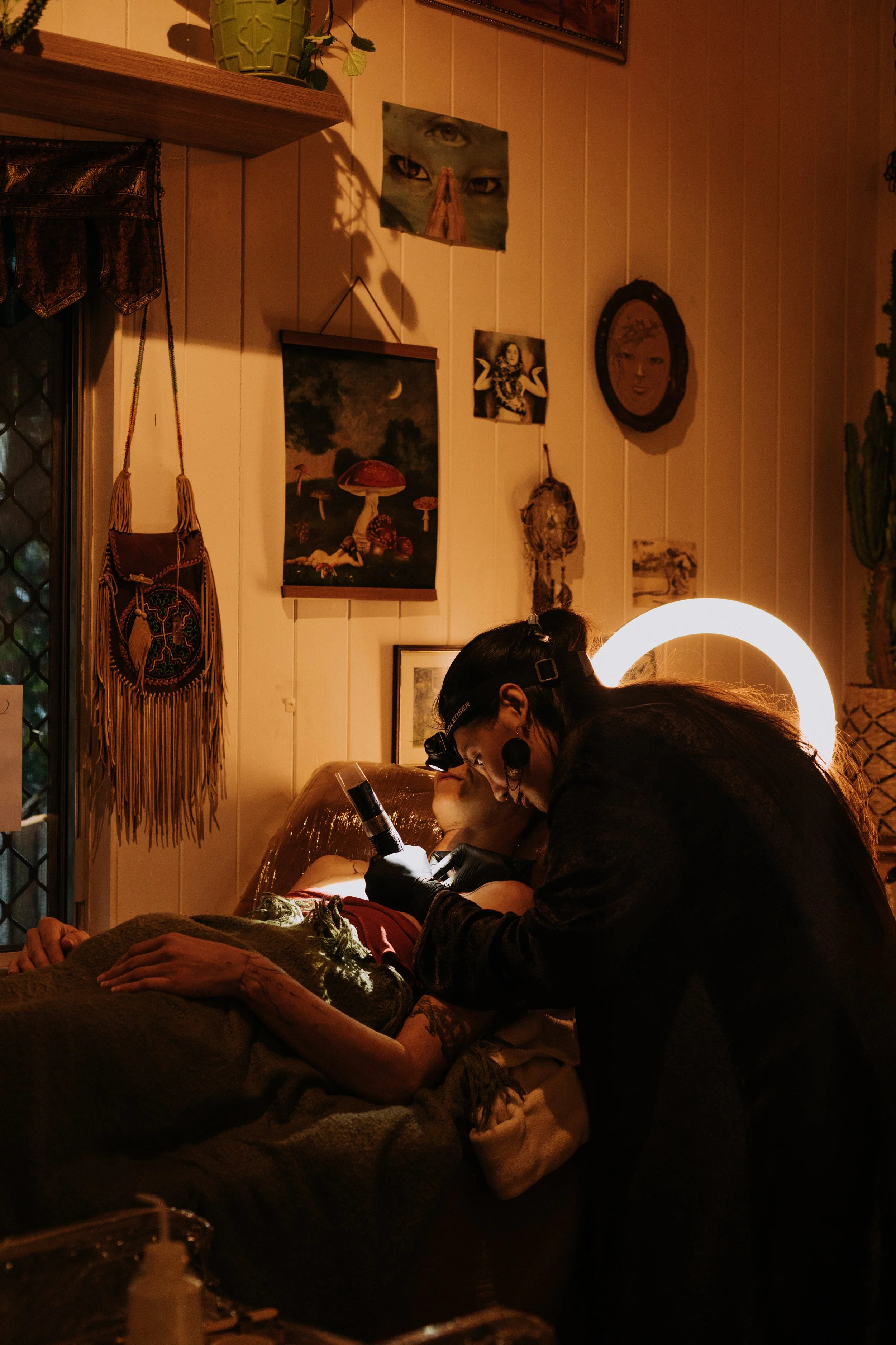 Each moment of the ceremony is filled with reverence, guiding the energy into a form that embodies your soul’s calling. The tattooing process becomes a living manifestation of your journey, woven into the canvas of your skin with deep intention and connection.